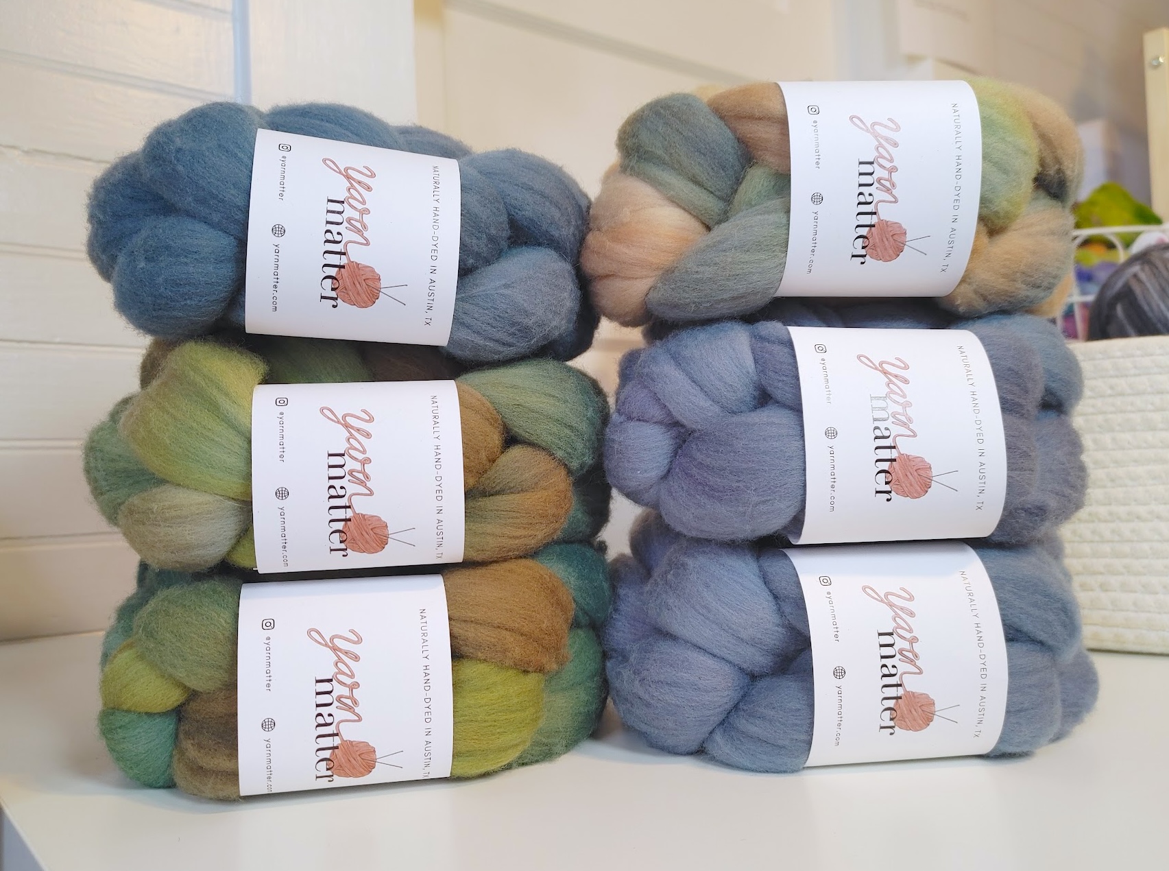 Yarn Matter hand dyed braids at the shop.