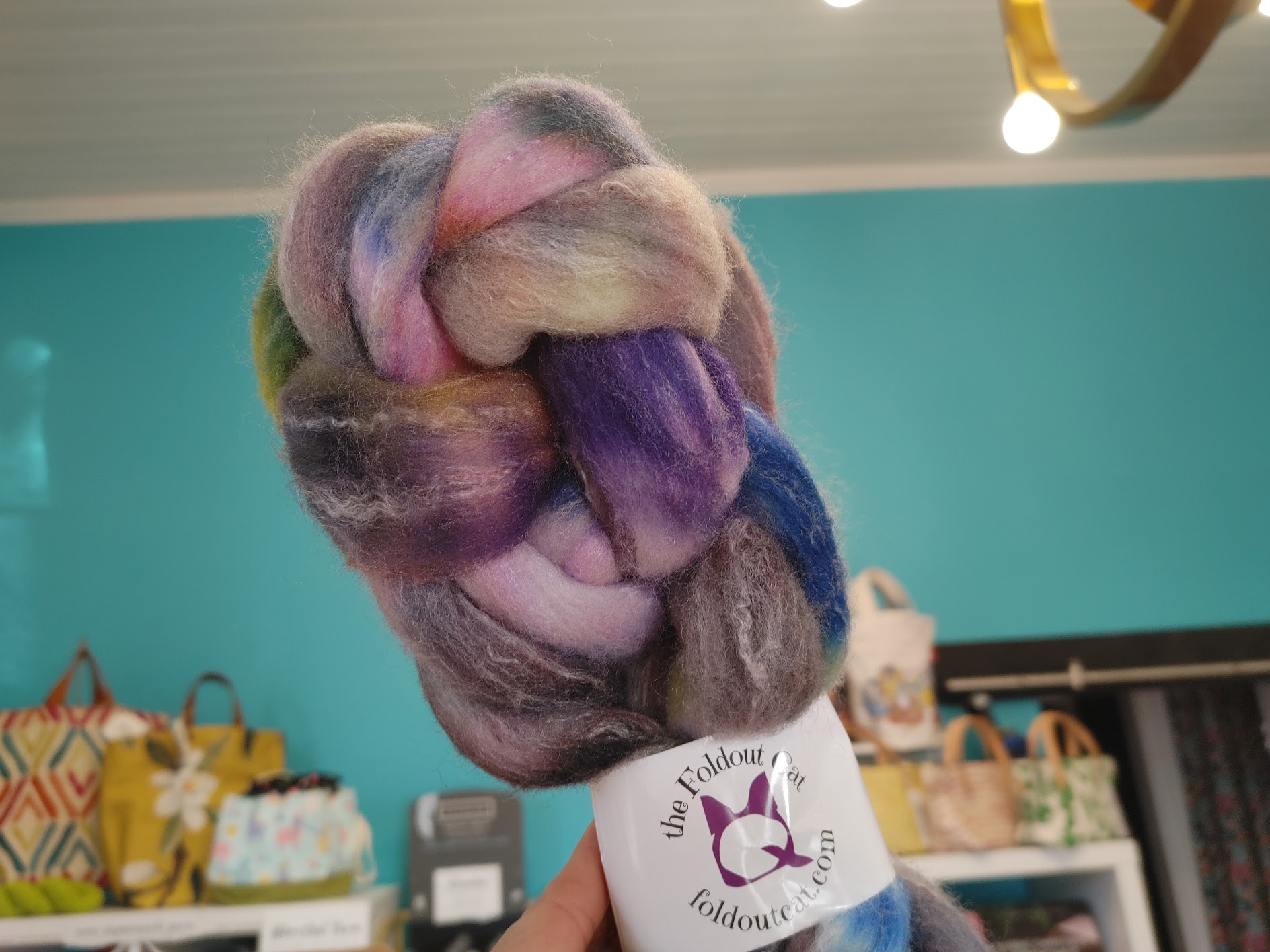 Foldout Cat hand dyed braids. Targhee/Bamboo/Silk blend.