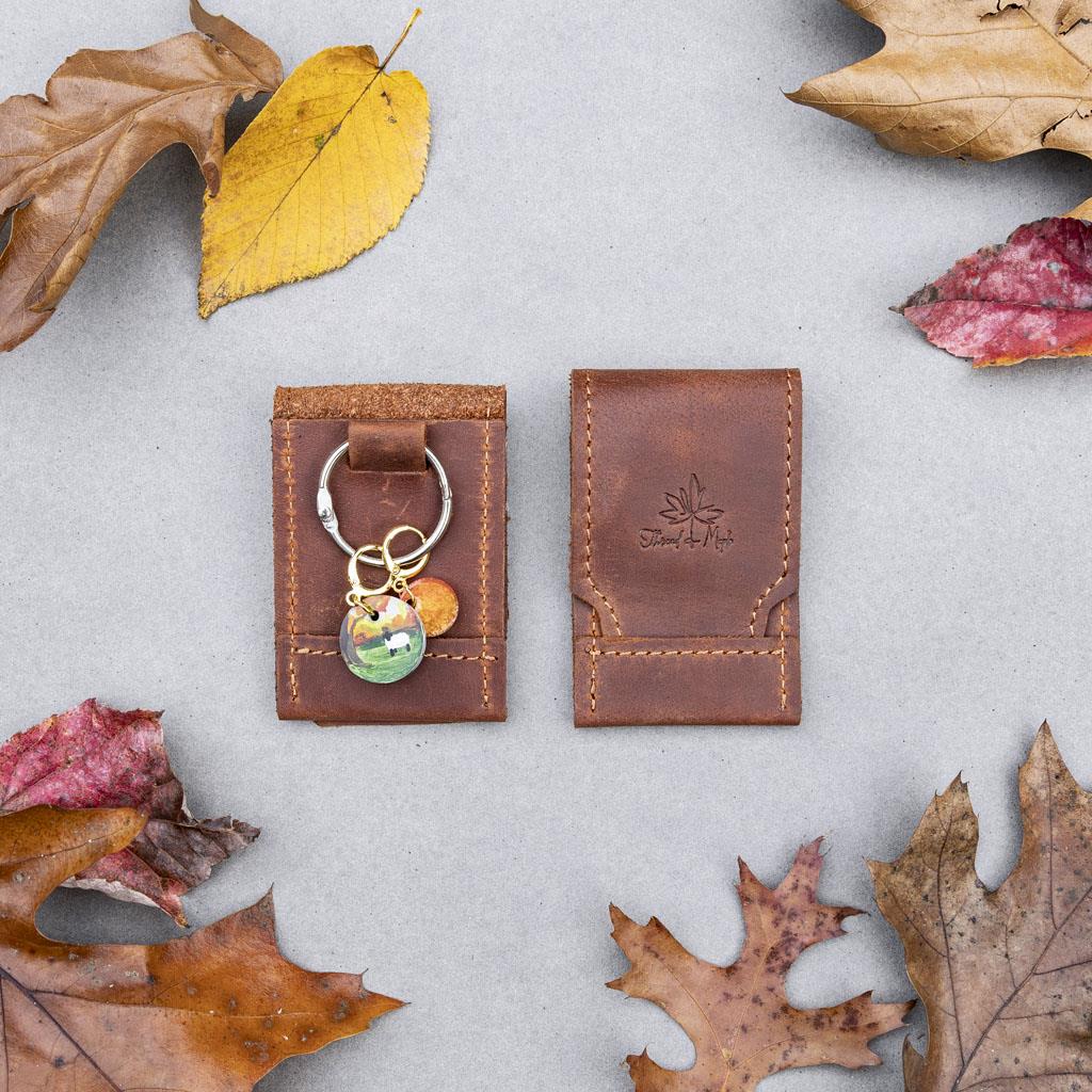 Thread & Maple – 5 leather bags + an assortment of leather pouches and needle and needle scissor holders.